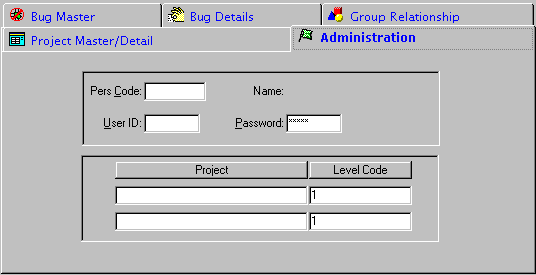 Depending on the rights given to users to access this application, only those personnel can logon to the application and can either view or edit the data of employees. In this case three levels of access rights have been provided. Access level 1 is the lowest amount of rights and level 3 denotes the highest amount of rights given to a user. Only the person with the highest amount of rights can access this tab page and give rights to other users. Following is the screen shot of the Administrator tab page.