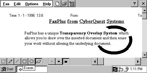 Some of the features of FaxPlus are - it uses the Class1 (Group3) fax standard, the user can quickly fax handwritten notes, draw/fax precise diagrams using the tools provided, import text and Pocket Word files, and draw over them using the Transparency Overlay System.
