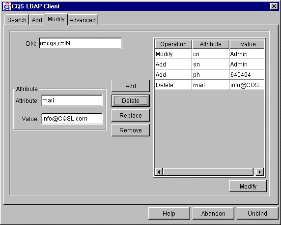 CQS Visual LDAP JavaClient at work Manipulate an entry
